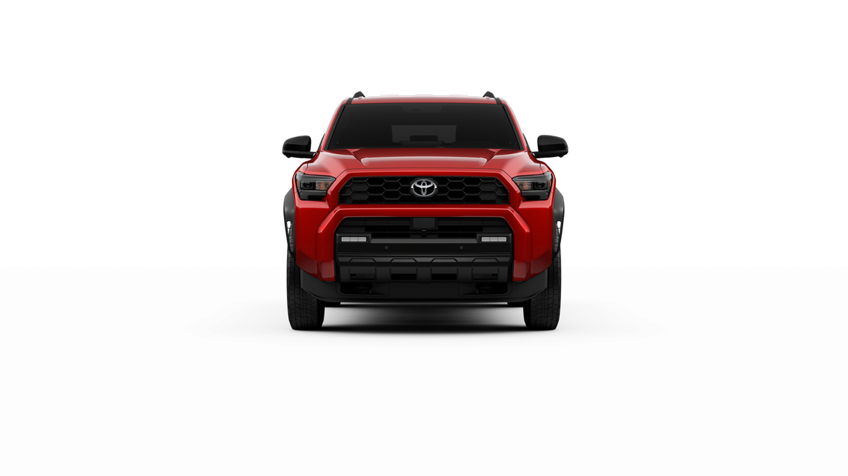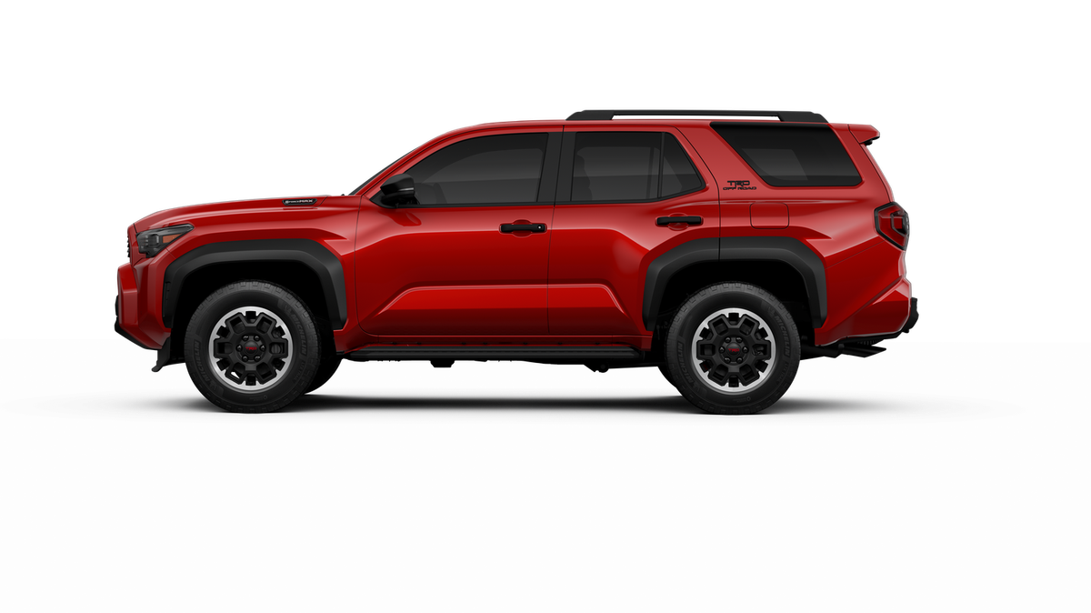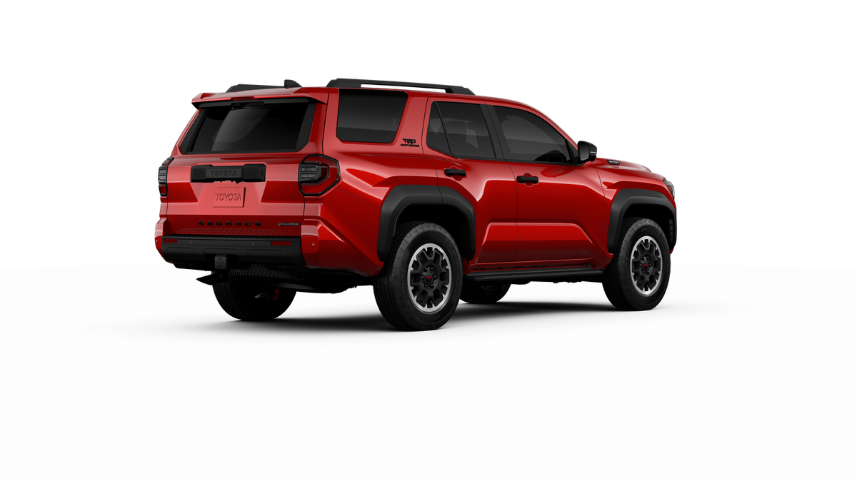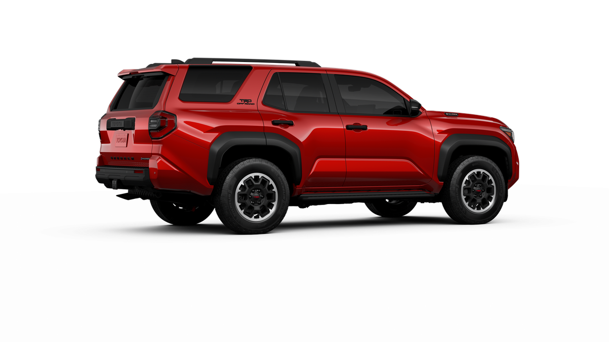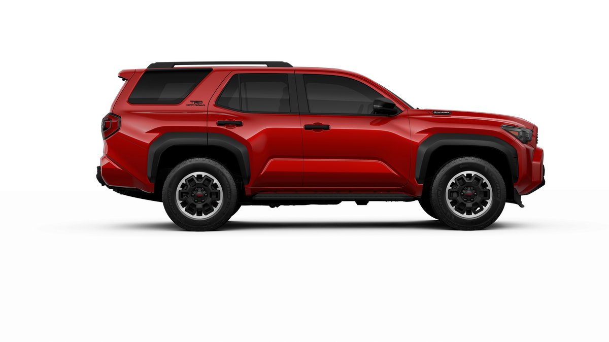 - Black honeycomb-style grille, mirror caps, door handles, and overfenders; color-keyed rear spoiler; black "TRD OFF ROAD" and "4RUNNER" badges