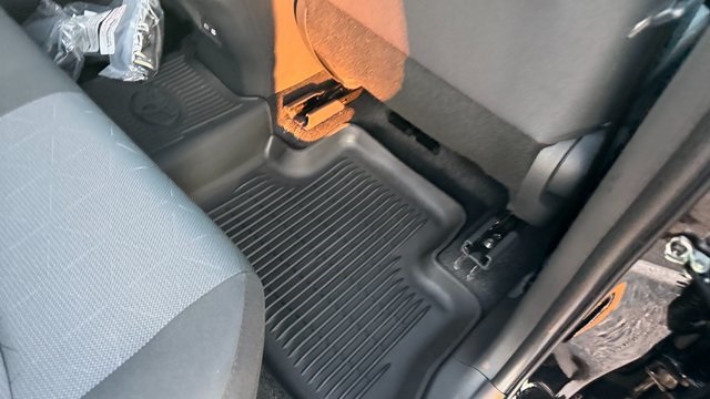 - Black carpet flooring with driver-side footrest
