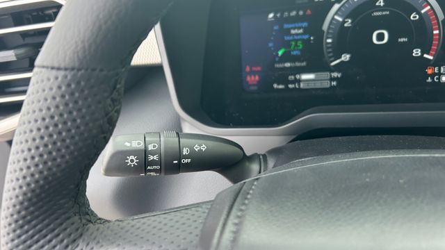 - Leather-wrapped manual tilt/telescopic steering wheel with phone, audio, display/infotainment, and Driver Assist controls