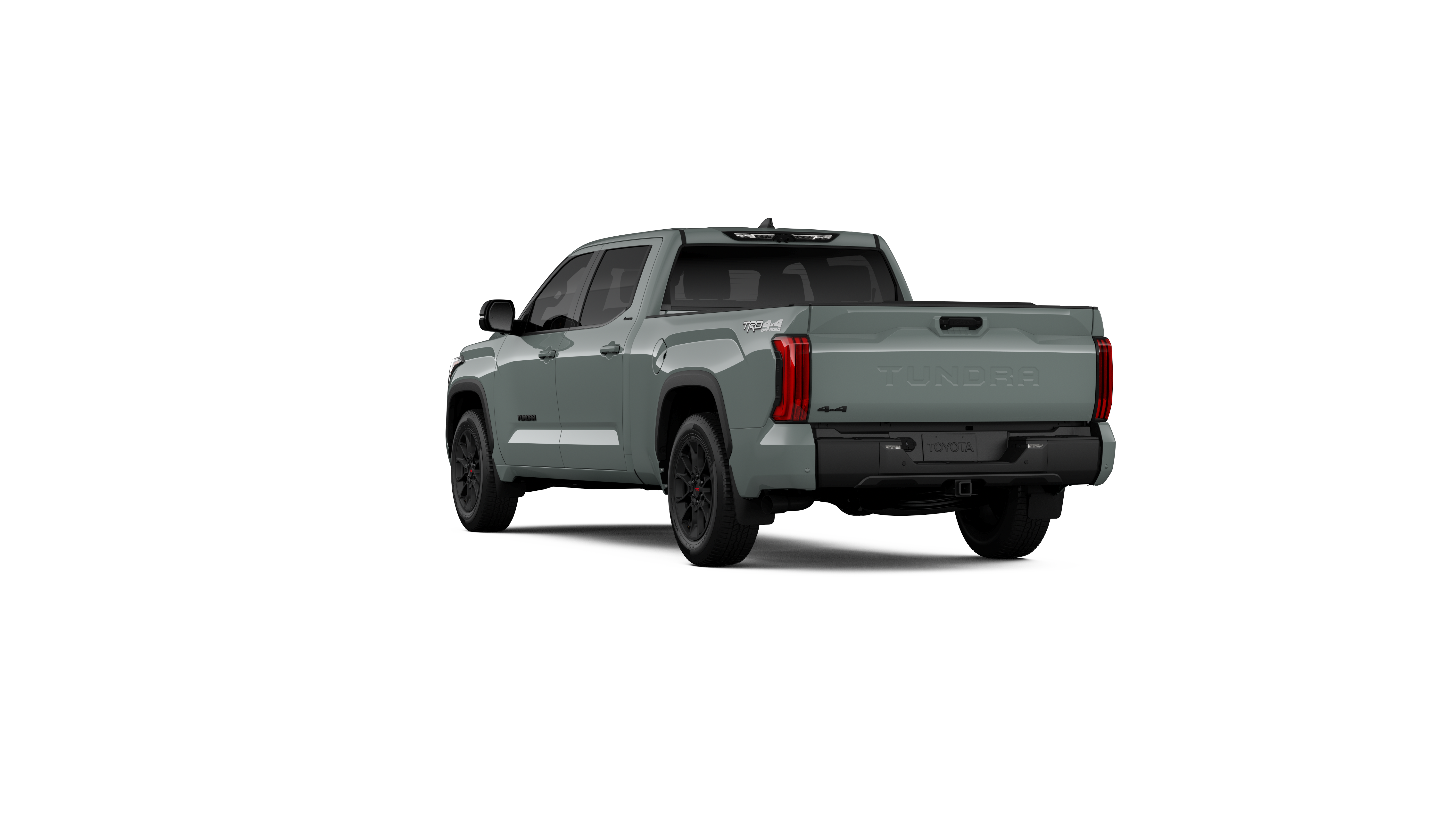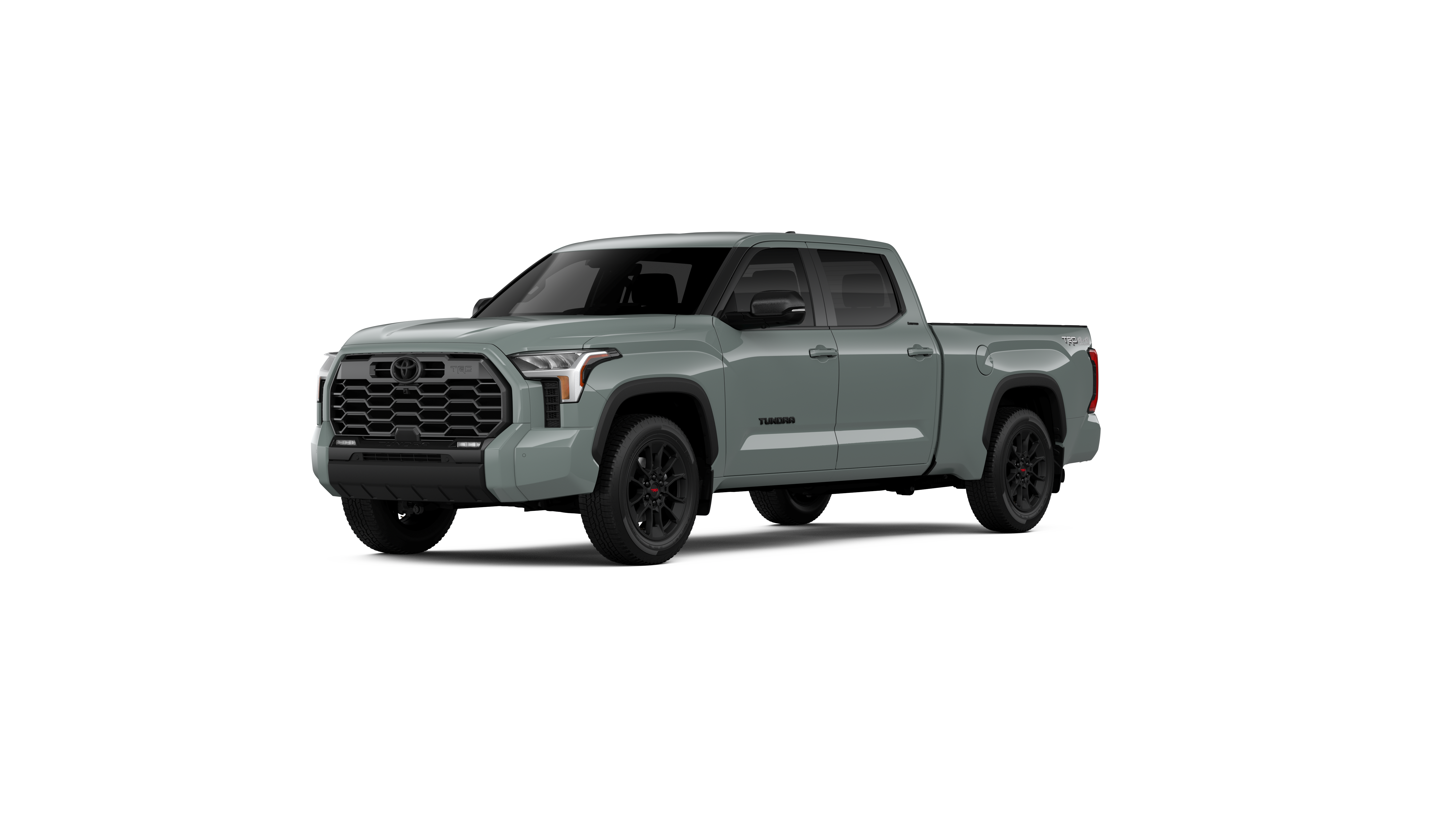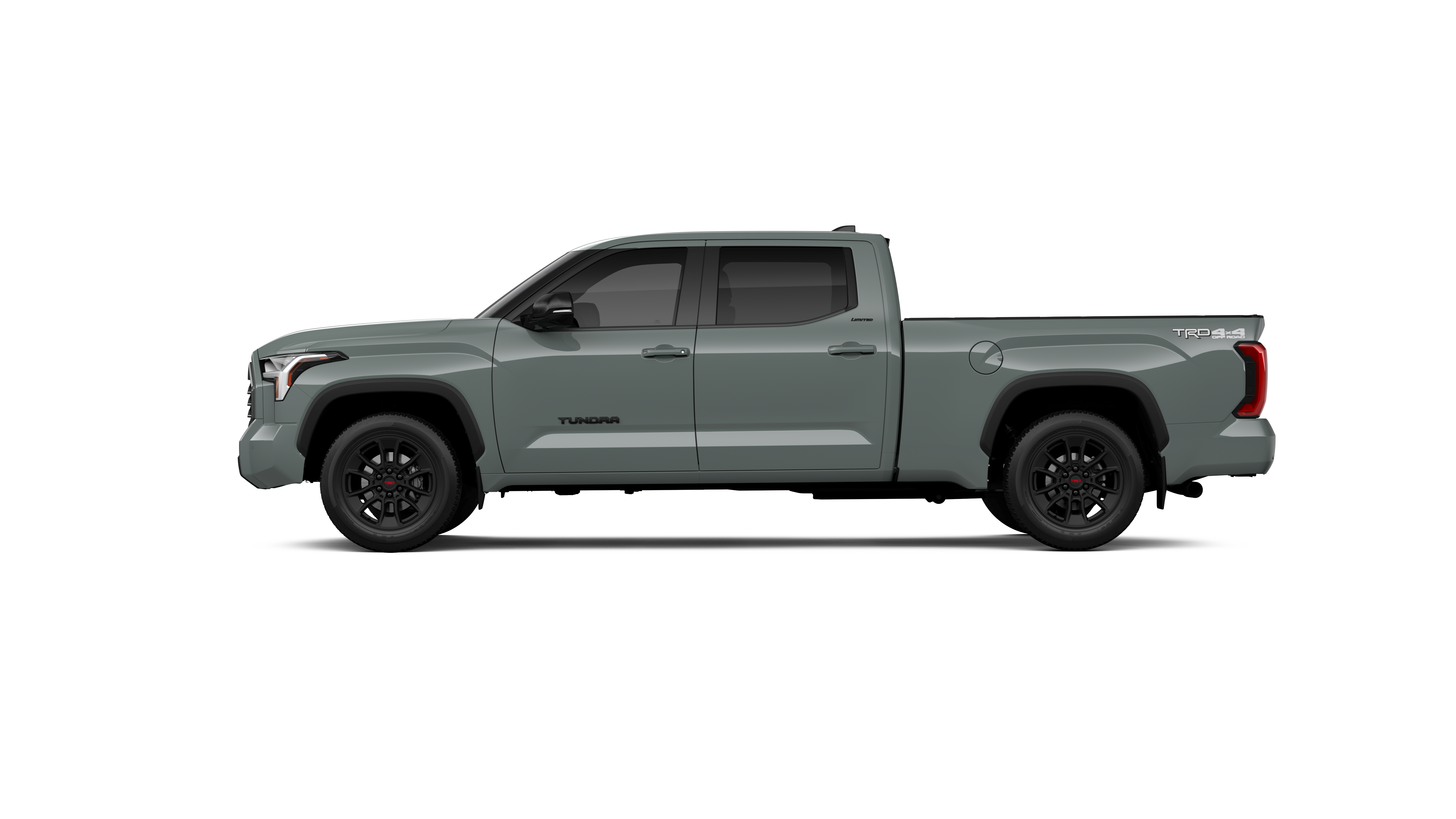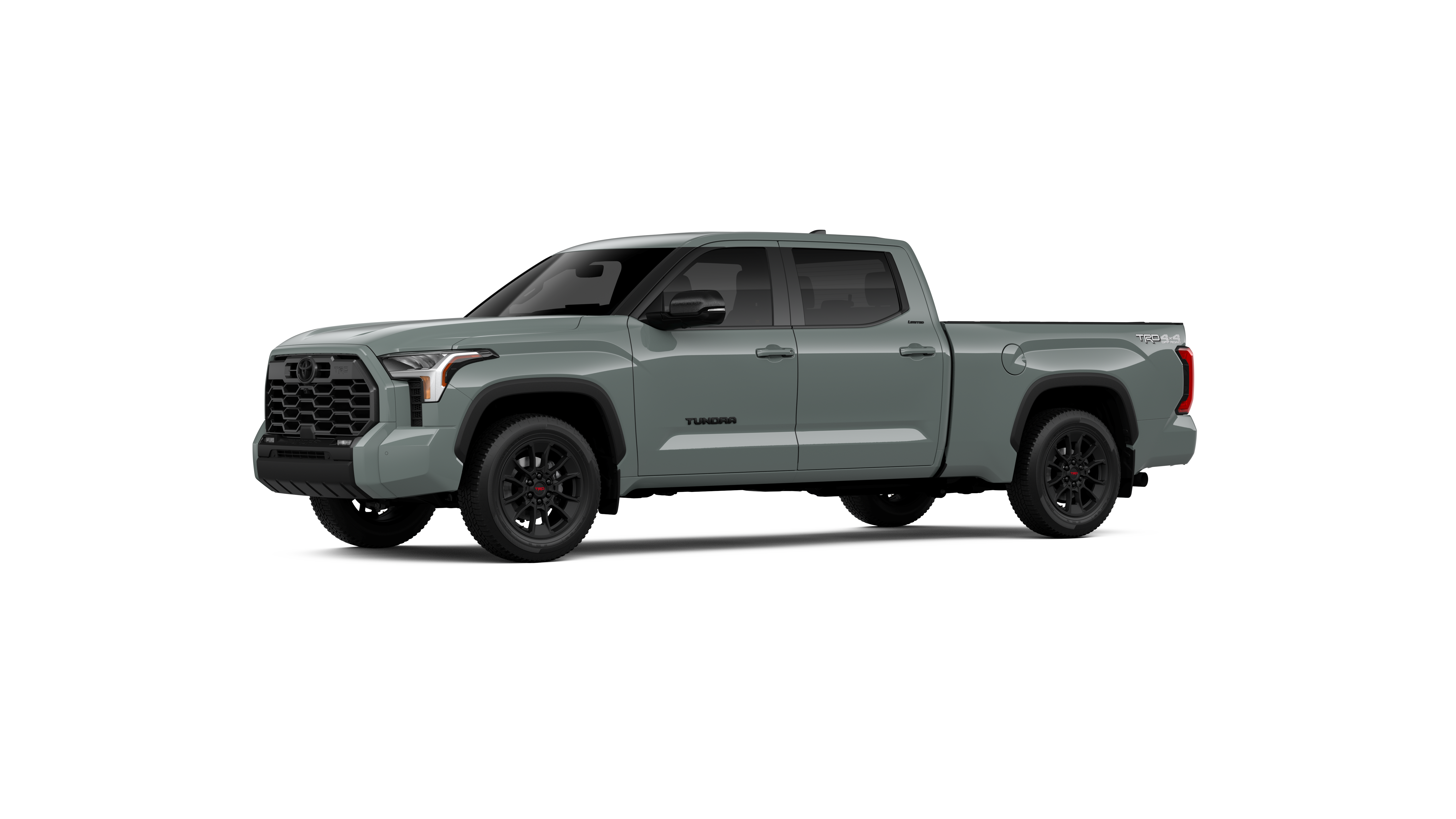 - Chrome "TUNDRA" and "LIMITED" door badges, door handles and window molding; color-keyed mirror caps and tailgate spoiler; gray-painted overfenders