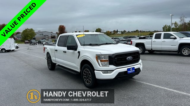 Handy Chevrolet is proud to present you with another True Market Priced Pre-Owned Vehicle. Transparent Pricing Of $ 36254 !! This 2021 Ford F-150 XLT is loaded with the following Factory Options: 4WD, ABS brakes, Alloy wheels, Compass, Electronic Stability Control, Heated door mirrors, Illuminated entry, Low tire pressure warning, Remote keyless entry, and Traction control 4WD, ABS brakes, Alloy wheels, Compass, Electronic Stability Control, Heated door mirrors, Illuminated entry, Low tire pressure warning, Remote keyless entry, Traction control, 4-Wheel Disc Brakes, 6 Speakers, Air Conditioning, AM/FM radio, Auto High-beam Headlights, Brake assist, Bumpers: chrome, Cloth 40/20/40 Front Seat, Delay-off headlights, Driver door bin, Driver vanity mirror, Dual front impact airbags, Dual front side impact airbags, Emergency communication system: SYNC 4 911 Assist, Exterior Parking Camera Rear, Front anti-roll bar, Front Center Armrest w/Storage, Front fog lights, Front reading lights, Front wheel independent suspension, Fully automatic headlights, Occupant sensing airbag, Outside temperature display, Overhead airbag, Overhead console, Panic alarm, Passenger door bin, Passenger vanity mirror, Power door mirrors, Power steering, Power windows, Radio data system, Radio: AM/FM Stereo w/6 Speakers, Rear reading lights, Rear step bumper, Rear window defroster, Security system, Speed control, Speed-sensing steering, Split folding rear seat, Steering wheel mounted audio controls, SYNC 4, Tachometer, Telescoping steering wheel, Tilt steering wheel, Trip computer, Variably intermittent wipers, Voltmeter, and Wheels: 17" Silver Painted Aluminum!!