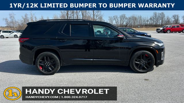 Handy Chevrolet is proud to present you with another True Market Priced Pre-Owned Vehicle. Transparent Pricing Of $ 35272 !! This 2023 Chevrolet Traverse Premier Chevrolet Certified Pre-Owned is loaded with the following Factory Options: AWD Front License Plate Bracket Mounting Package, Preferred Equipment Group 1LZ (Heated 2nd Row Outboard Position Seats, Heated Driver & Front Passenger Seats, and Ventilated Driver & Front Passenger Seats), Redline Edition (Black Bowtie, Black Door Handles, Black Roof Rails, Dual SkyScape 2-Panel Power Sunroof, Ornamentation, Redline Accent Decals (LPO), and Wheels: 20" Gloss Black Painted Alum w/Red Stripes), Chevrolet Certified Pre-Owned Certified, AWD, 10 Speakers, 3.49 Axle Ratio, 3rd row seats: split-bench, 4-Wheel Disc Brakes, 6-Way Power Front Passenger Seat, 8-Way Power Driver Seat Adjuster, ABS brakes, Air Conditioning, Alloy wheels, AM/FM radio: SiriusXM with 360L, Apple CarPlay/Android Auto, Auto High-beam Headlights, Auto-dimming door mirrors, Auto-dimming Rear-View mirror, Automatic temperature control, Bose Premium 10-Speaker Audio System Feature, Brake assist, Bumpers: body-color, Compass, Delay-off headlights, Driver door bin, Driver vanity mirror, Dual front impact airbags, Dual front side impact airbags, Electronic Stability Control, Emergency communication system, Exterior Parking Camera Rear, Four wheel independent suspension, Front anti-roll bar, Front Bucket Seats, Front Center Armrest, Front dual zone A/C, Front Passenger 2-Way Power Lumbar, Front reading lights, Fully automatic headlights, Garage door transmitter, Heated door mirrors, Heated front seats, Heated rear seats, Heated steering wheel, Illuminated entry, Leather steering wheel, Low tire pressure warning, Memory seat, Navigation System, Occupant sensing airbag, Outside temperature display, Overhead airbag, Overhead console, Panic alarm, Passenger door bin, Passenger vanity mirror, Perforated Leather-Appointed Seat Trim, Power door mirrors, Power Driver Lumbar Control, Power driver seat, Power Liftgate, Power passenger seat, Power steering, Power windows, Premium audio system: Chevrolet Infotainment 3 Plus, Radio data system, Radio: Chevrolet Infotainment 3 Plus System w/Navi, Rear air conditioning, Rear anti-roll bar, Rear reading lights, Rear window defroster, Rear window wiper, Remote keyle